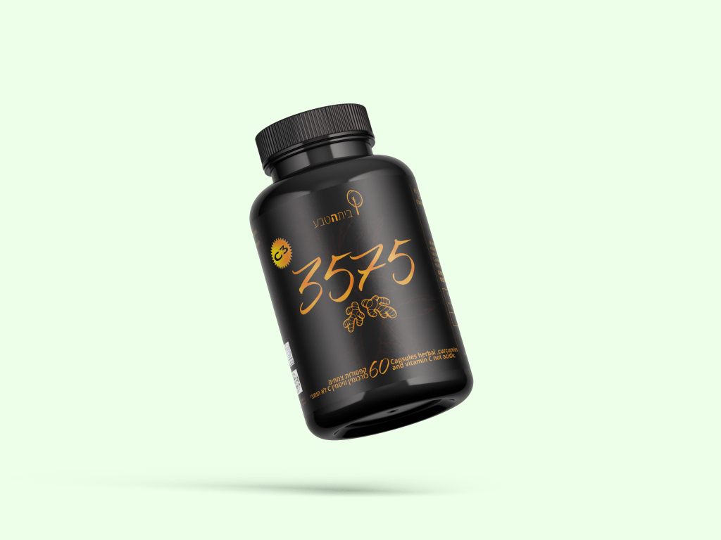כמוסות כורכום המכילות 3,575 מ"ג כורכומין פעיל, בתוספת ויטמין סי לא חומצי, בוסווליה ופלפל שחור